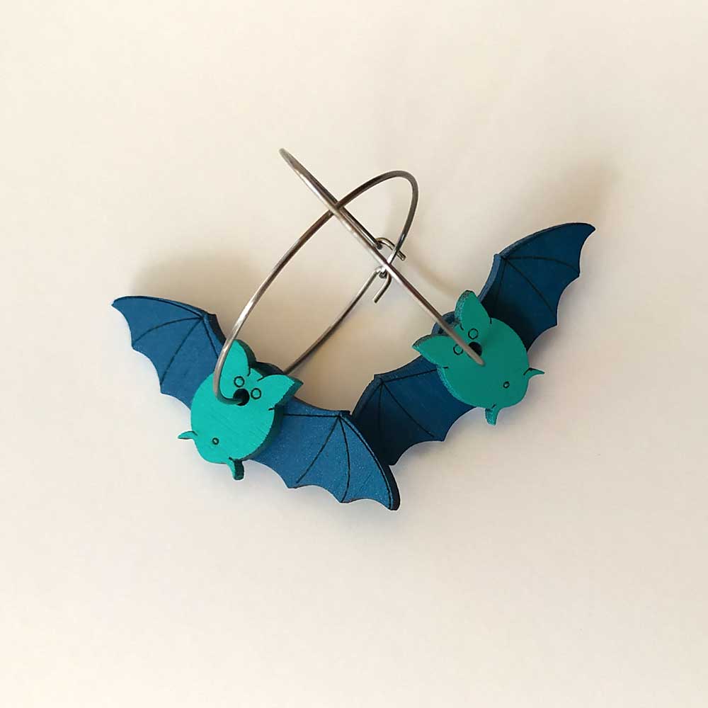 Ces boucles d’oreilles chauve-souris raviront spéléologues, chiroptérologues… ou tout simplement tous les amoureux de ces adorables petits mammifères ailés ! Les ailes et le corps de la chauve-souris sont constitués de deux pièces séparées et non collées. Chaque mouvement de la tête fait ainsi bouger les ailes de la chauve-souris, qui semble virevolter autour de nous !