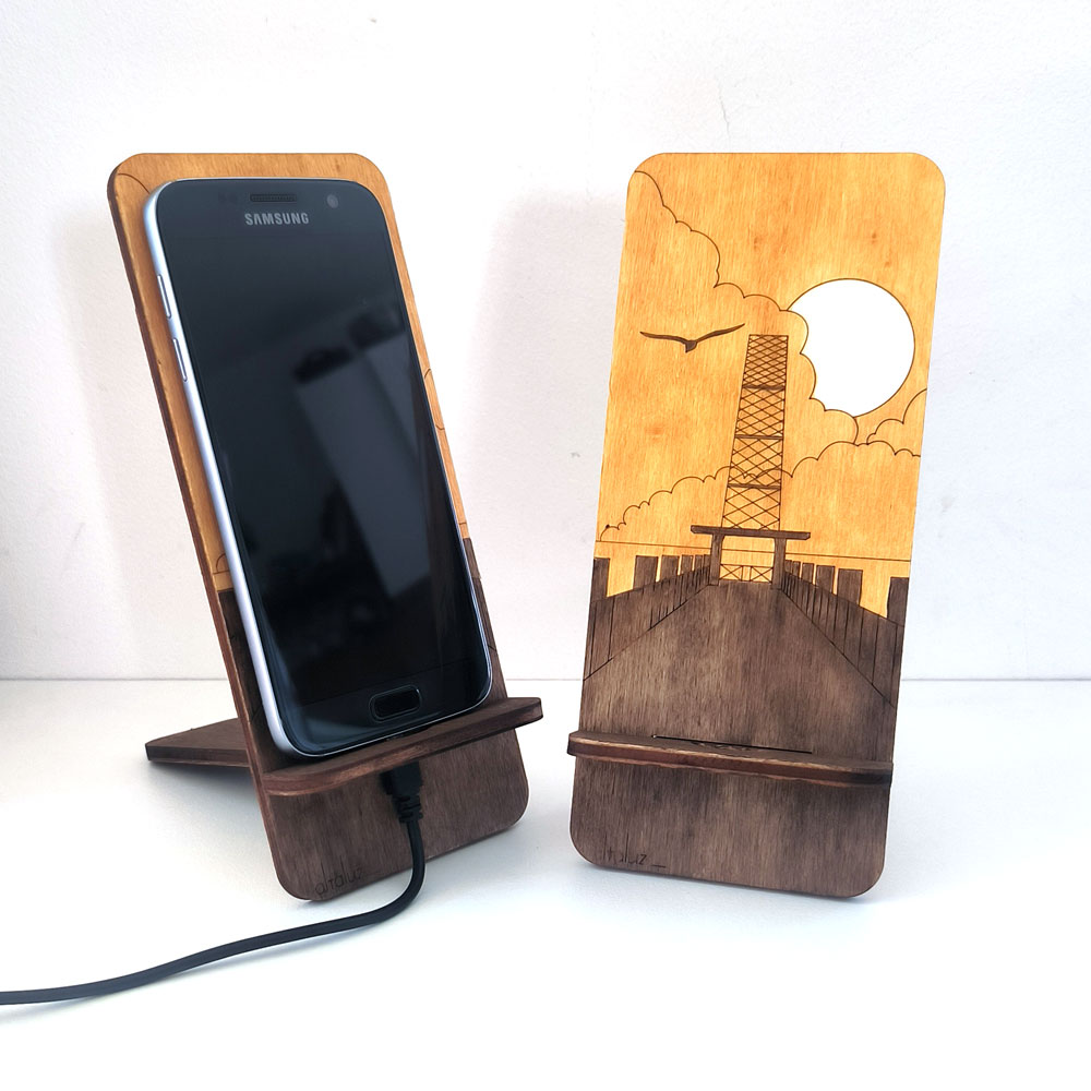Ce support téléphone en bois est pratique pour poser votre smartphone pendant le visionnage de vidéo ou durant les réunions téléphoniques. Ce support de téléphone portable est aussi un moyen efficace pour s’imposer un endroit où ranger son smartphone ! Celui-ci ne se cachera plus dans la maison… Une ouverture dans la partie basse du support vous permet de faire passer le câble d’alimentation du téléphone. Ainsi, ce support pour téléphone est utilisable même pendant la charge.