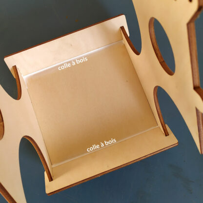 Instruction de montage : assembler en premier les 4 pièces qui s’accrochent sur le plancher. Pour une bonne solidité de la mangeoire, mettre un peu de colle à bois pour maintenir les deux rebords obliques (voir photo). Poser ensuite l’un des pans de toit, puis le deuxième. Là aussi, un peu de colle à bois permettra de rendre l’ensemble bien solide.